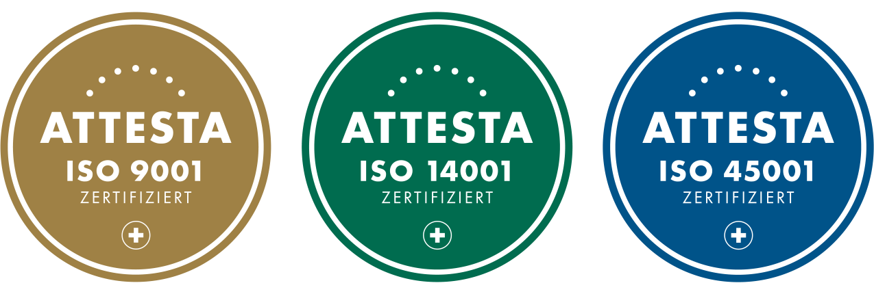 Mit unserer Mitgliedschaft bei der SUVA-Sicherheitscharta sowie unserer ISO-Zertifizierung 45001 Arbeitssicherheit bekennen wir uns öffentlich, dass der Schutz unserer Mitarbeiter zentral ist.